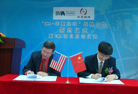 為了推動管理會計在中國的發(fā)展,搭建中國管理會計人才的國際培養(yǎng)平臺,2009年9月13日,華夏經緯財務咨詢(廈門)有限公司與美國管理會計師協(xié)會IMA在廈門市廈禾路富興大廈B幢8樓華夏經緯高級培訓室舉行隆重的項目合作簽約儀式。華夏經緯財務咨詢(廈門)有限公司正式成為IMA在中國第五家、福建地區(qū)首家戰(zhàn)略合作伙伴。雙方戰(zhàn)略合作協(xié)議的簽訂,標志著華夏經緯CMA培訓項目正式啟動。